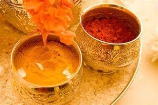 This ceremony involves application of turmeric and sandalwood paste on the bride and