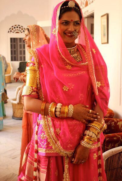 While the Punjabi brides are always spotted in a typical cream and red chooda, the chooda to a Rajasthani bride varies in different patterns in different regions. It is either a pail cream chooda in ivory or ivory bangles that are painted in red embellished with gold or even a combination of red and green ivory bangles.